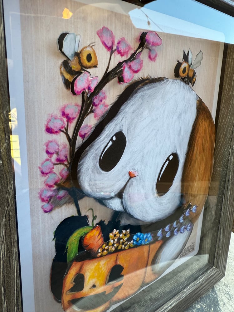• Print is cut and layered giving the image a 3D effect. •Print comes in its shadow box frame. •shadow box size 8x10 • Pop ups are made to order. Please allow one week for shipment. •shadow box is signed on the back.