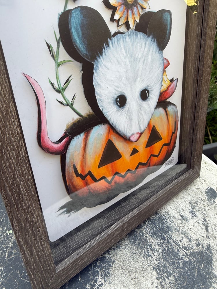 • Print is cut and layered giving the image a 3D effect. •Print comes in its shadow box frame. •shadow box size 8x10 • Pop ups are made to order. Please allow one week for shipment. •shadow box is signed on the back.